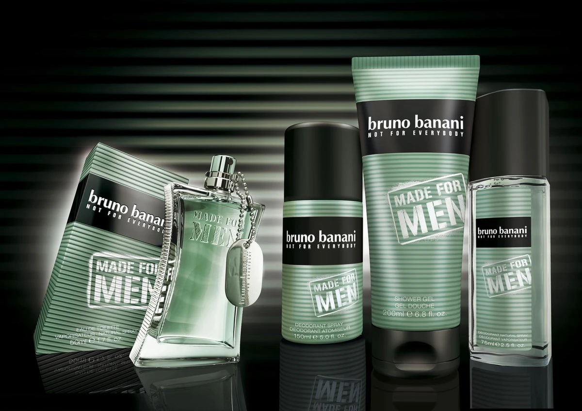 Bruno Banani Geuren – Parfum Heren: Op zoek naar een heerlijke parfum voor heren? Kies dan voor de herengeur van Bruno Banani. Made for Men is een prikkelende, verleidelijke geur die is ontwikkeld om een casual, relaxte en mannelijke indruk te maken. Het geurenspel achter de geur is gebaseerd op aanvallen, veroveren en overwinnen. De topnoten flirten met bergamot, Tunesische rozemarijn en groene appel. Het hart verovert je door zijn combinatie van geranium met koude, verfrissende waternoten. De basisnoten leiden naar de overwinning door de sexy, zachte en rokerige noten van cederhout uit Virginia, tonkabonen, mos en muskus, die de geur een supermannelijke uitstraling geven.
