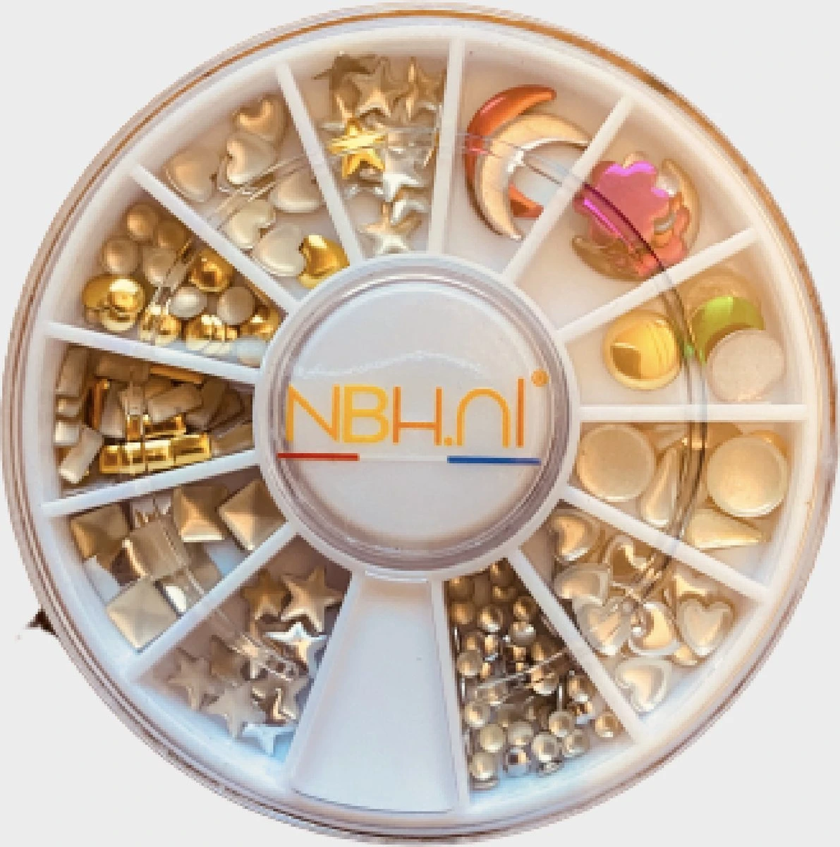In deze 6 cm ronde opbergbox zitten Rhinestone / Strass steentjes in 10 verschillende maten en vormen. De steentjes varieren in grote van 1,5 / 2 / 3 / 4 en 5 mm. Deze steentjes geven uw nagels een prachtige uitstraling.