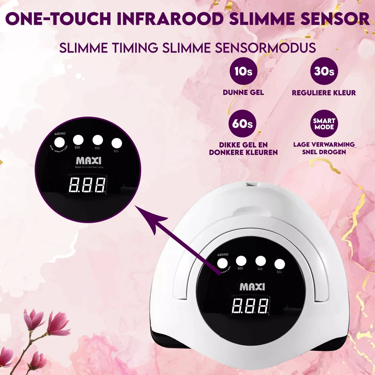 Op zoek naar een krachtige nageldroger, waarmee je in enkele seconden de nagels van je handen of voeten kunt drogen? Zoek dan niet verder. De Maxi nageldroger heeft 45 sterke 168 Watt LED UV-lampen.