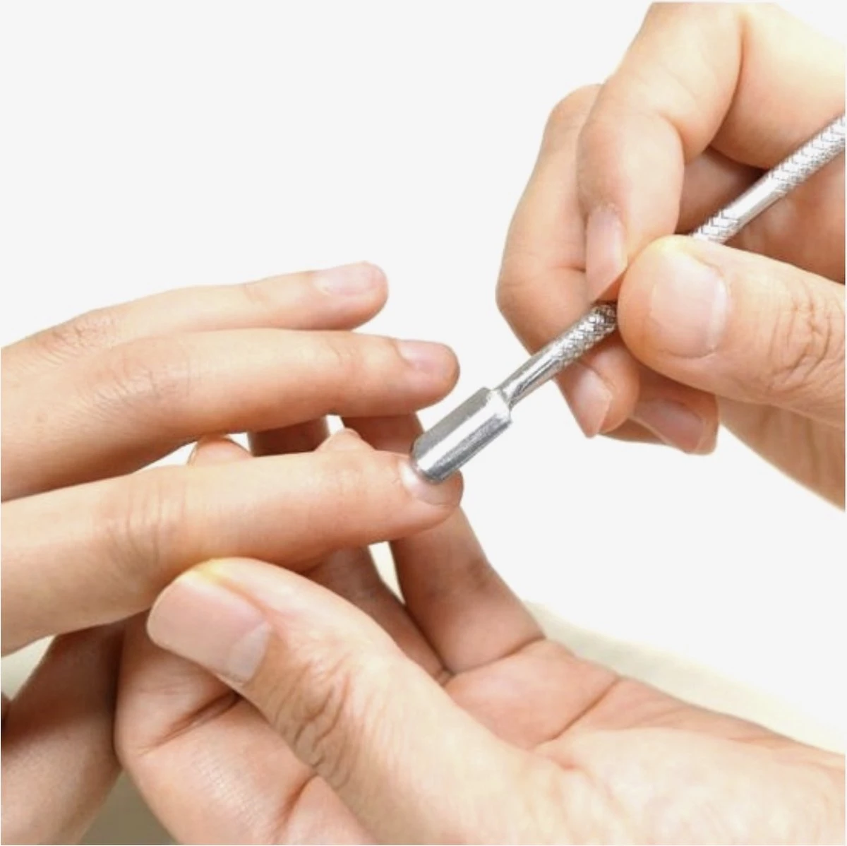 Dit bokkepootje om je nagelriemen naar achter te duwen mag niet ontbreken in je manicure set. Met deze nagel bokkepoot kun je gemakkelijk en verantwoord je nagelriemen terugduwen zonder dat je hiermee je nagelriemen beschadigd.