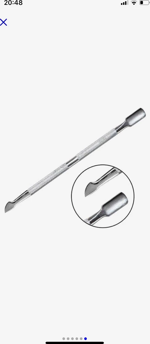 Deze cuticle pusher is gemaakt van RVC en heeft 2 kanten. Een kant is de achteruit duwer en de andere kant is een handige nagelriem schoonmaker. Doordat de achteruit duwer glad is zal deze niet de nagels beschadigen.