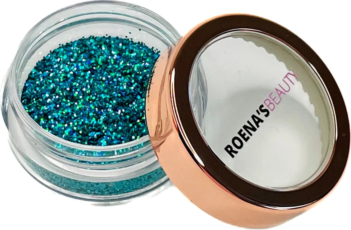 Creëer een show-stopping look met de glitters van Roena’s Beauty. Deze oogverblindende formule geeft maximale reflectie.