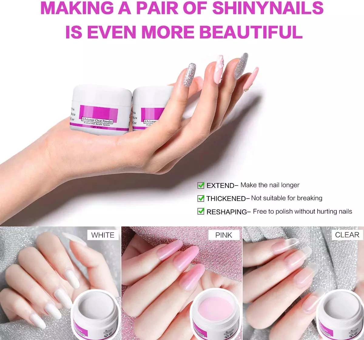 3 potjes acrylpoeders