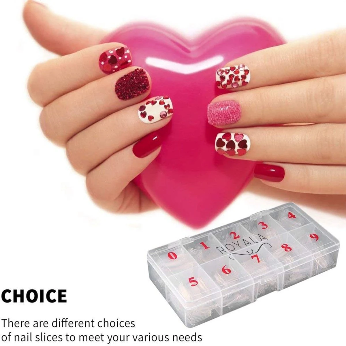 1. — Royala 500 stuks Transparante / Clear / Heldere French, Half Cover, Nageltips in 10 verschillende maten voor het creeëren van de perfecte kunstnagels. Geschikt voor gebruik van zowel gellak als acryl.