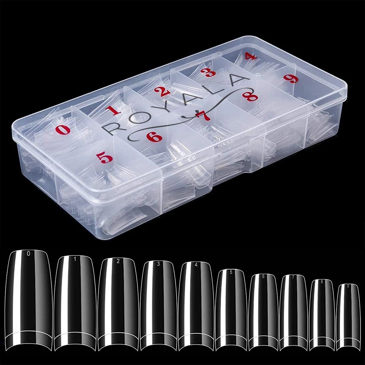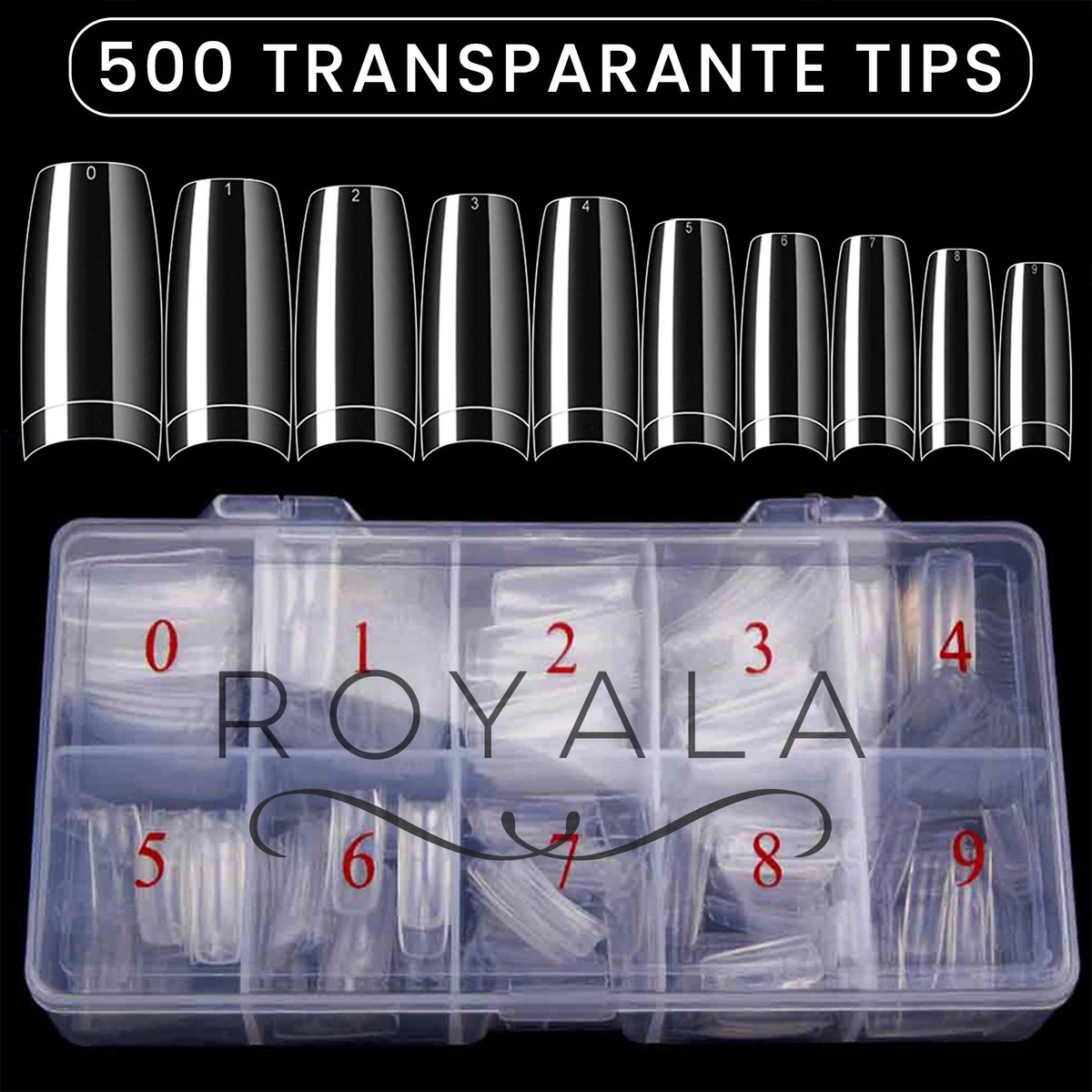 Royala 500 stuks Transparante / Clear / Heldere French Half Cover Nageltips in 10 verschillende maten voor het creeëren van de perfecte kunstnagels. Geschikt voor gebruik van zowel gellak als acryl.