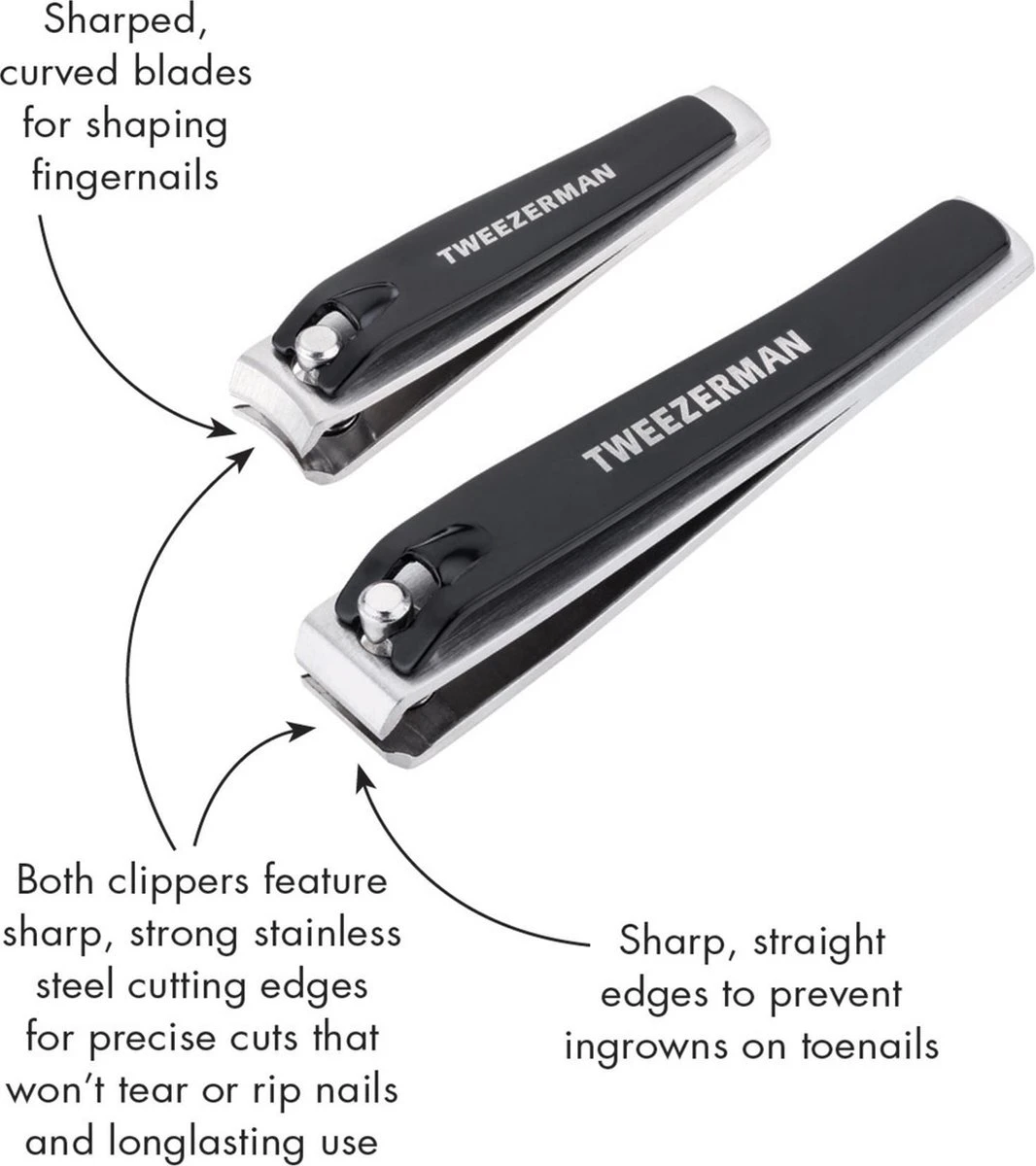 Zelfs de kleintjes van Tweezerman krijgen alle aandacht en worden zorgvuldig afgewerkt. Deze set van twee nagelknippers bestaat uit een normale en mini-formaat knipper. De scherpe RVS randen zorgen voor comfortabel en moeiteloos bijwerken van je nagels.