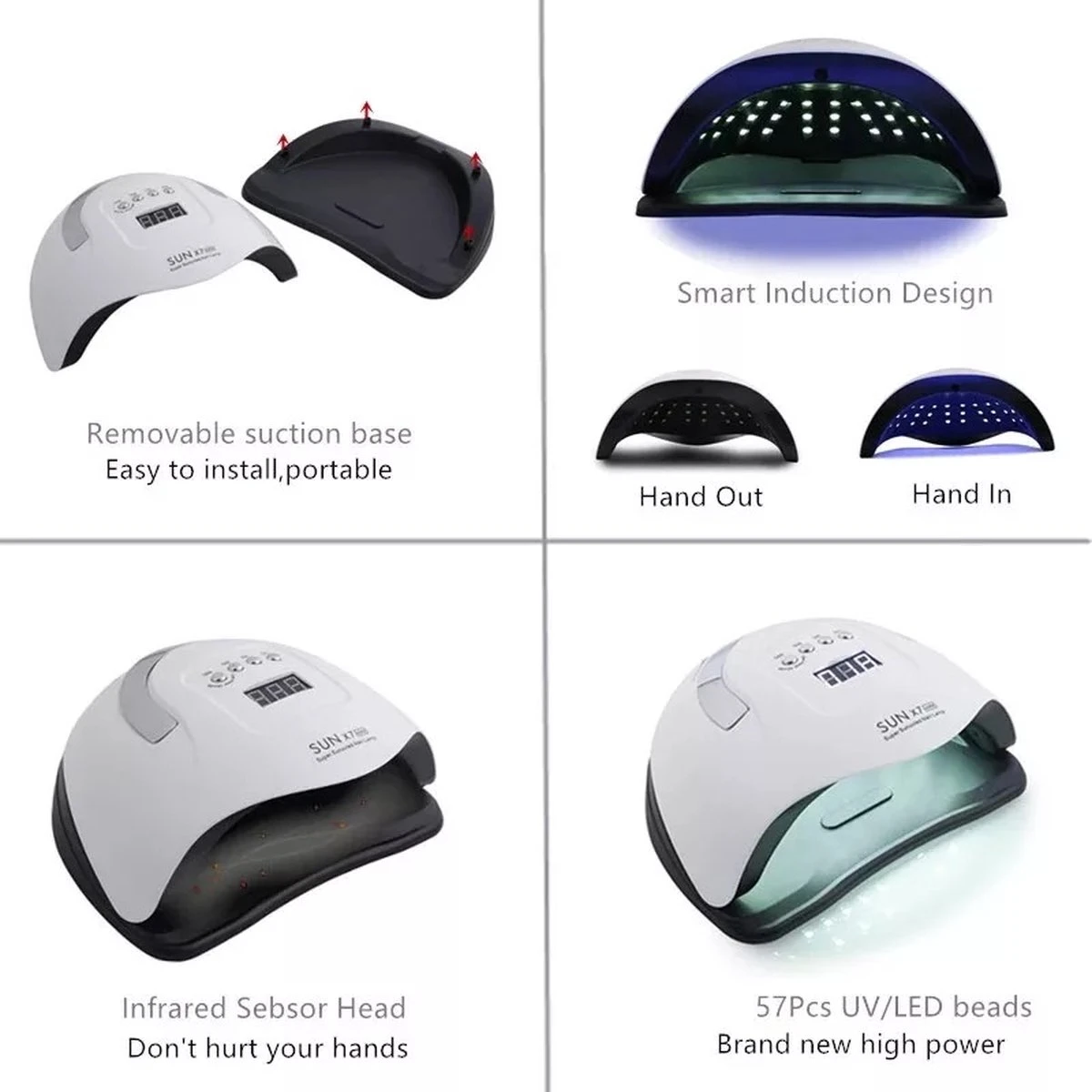UV nagel producten als UV-gel of UV-coating hebben normaal lange tijd nodig om te drogen. Met deze extreme UV LED lamp nageldroger met wel 57 Leds lampen kunt u snel en efficiënt droge nagels krijgen en de wachttijd sterk verminderen. Bovendien heeft deze lamp 180W vermogen waardoor uw nagels sneller drogen dan de andere modellen. De UV LED lamp gaat sensor aan als u uw hand eronder legt. Ook gaat hij sensor uit als u uw hand uit de lamp haalt.